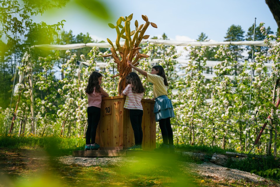 Il progetto unisce gioco, fiaba e scoperta, guidando i piccoli esploratori lungo dieci tappe, ognuna scandita da un incontro simbolico e una scultura in legno. Una storia che parla di crescita, cura, ascolto e tempo, con un forte legame con le mele Melinda e il territorio in cui nascono.